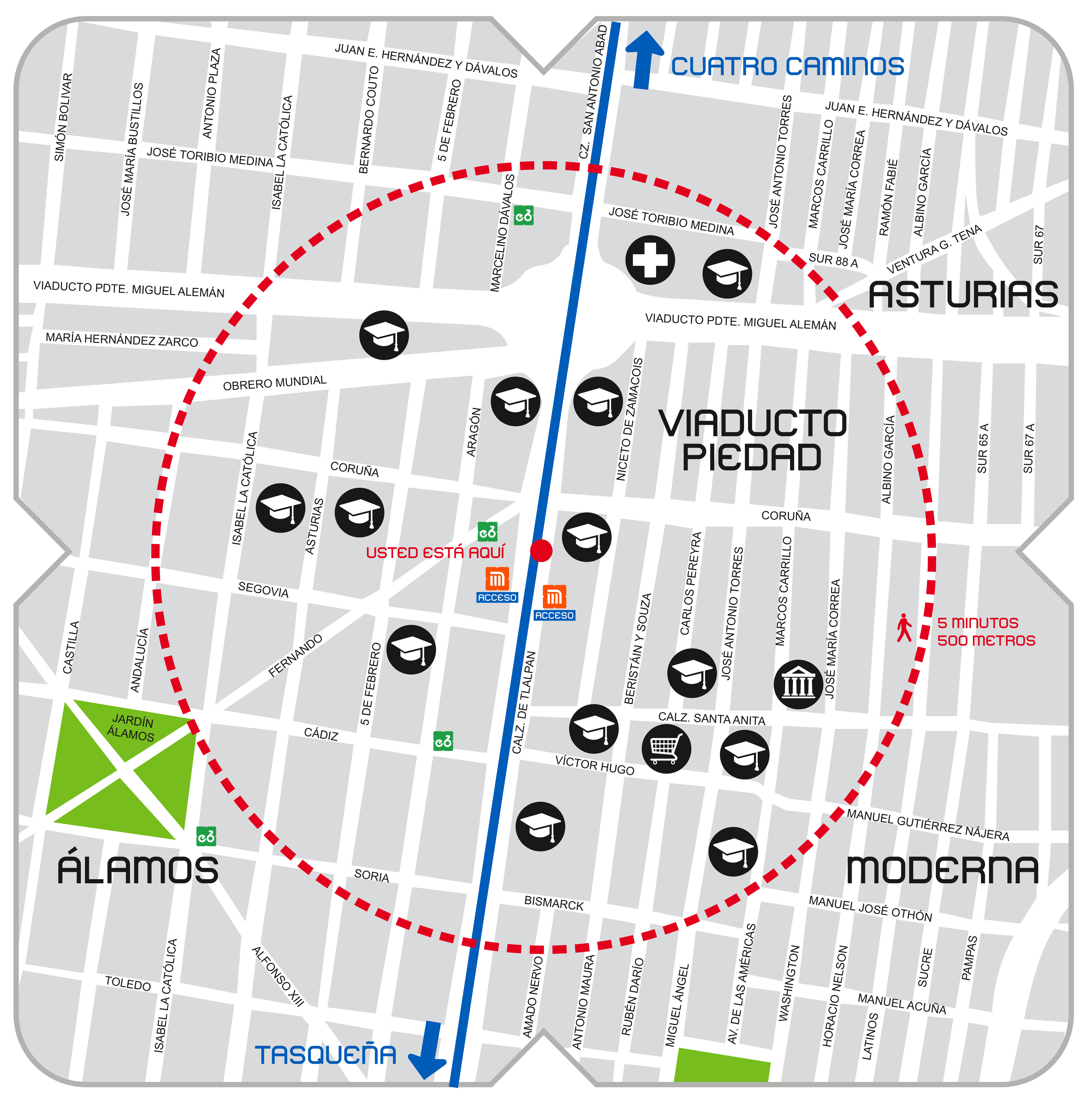 - Oriente: Entre calle Coruña, Calzada Santa Anita y Calzada de Tlalpan, Colonia Viaducto Piedad.